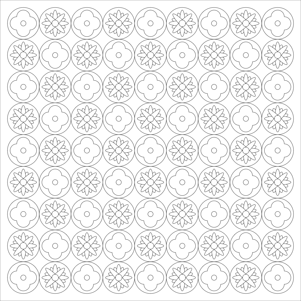 Coloring floral grids like this is a delightful way to relax. The alternating flowers keep your mind engaged, yet the repetitive structure soothes and calms, making it easy to enter a meditative flow. Adding your colors to each bloom allows you to explore nature-inspired palettes or invent bold new combinations.